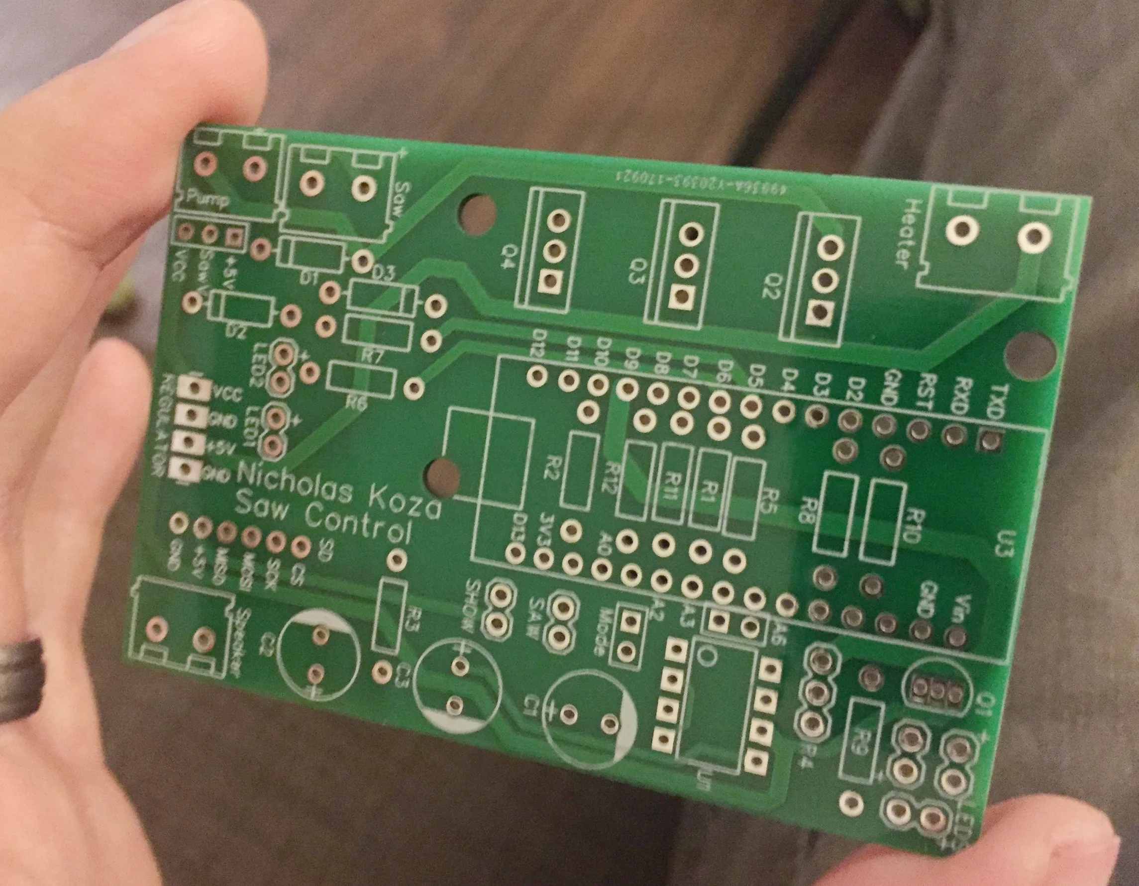 This little arm-mounted prop packs a punch. I built it for a mad doctor costume. It includes a spinning “blade”, fog effects, sound, and lights. Because space was at a premium on a wearable prop like this, I designed a custom PCB to fit the control board into the main housing.